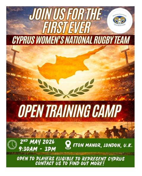 The next step is Eton Manor RFC in London. On 2 May, the first open training camp for the Cyprus women's national team will open its doors to any woman born in Cyprus, with Cypriot parents or grandparents, or who has lived on the island for five consecutive years. Team Manager Christy Yiannoudes said she is confident that this team can achieve what the men's team achieved, and establish itself as a competitive presence in Rugby Europe. The target is international competition by 2027.