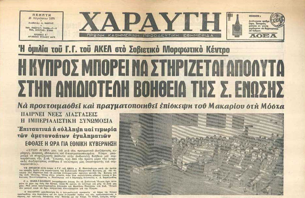 The mouthpiece od left AKEL, Haravgi, begins circulation in Nicosia.