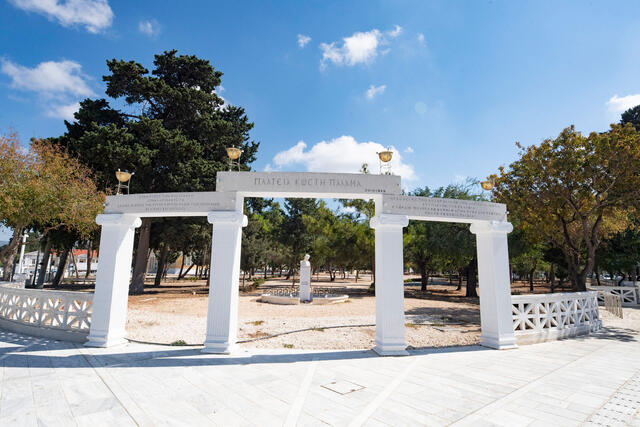In 1950, as part of “Palamas Week”, a nationwide fundraising campaign began for the erection of a bust of Palamas. The Municipality of Paphos contributed financially, while significant sums were raised across Cyprus, with Paphos covering the largest share of the cost.