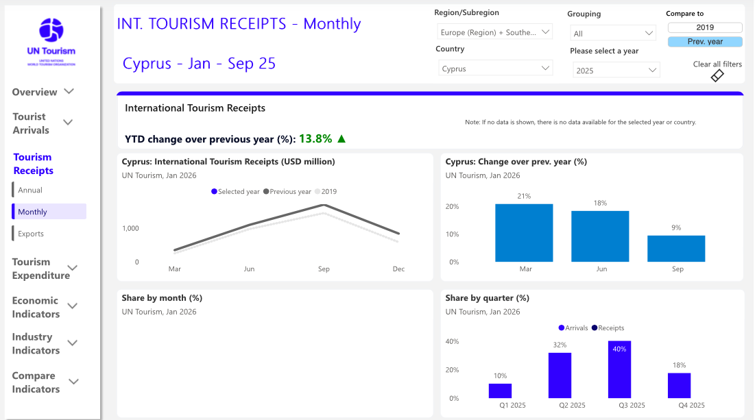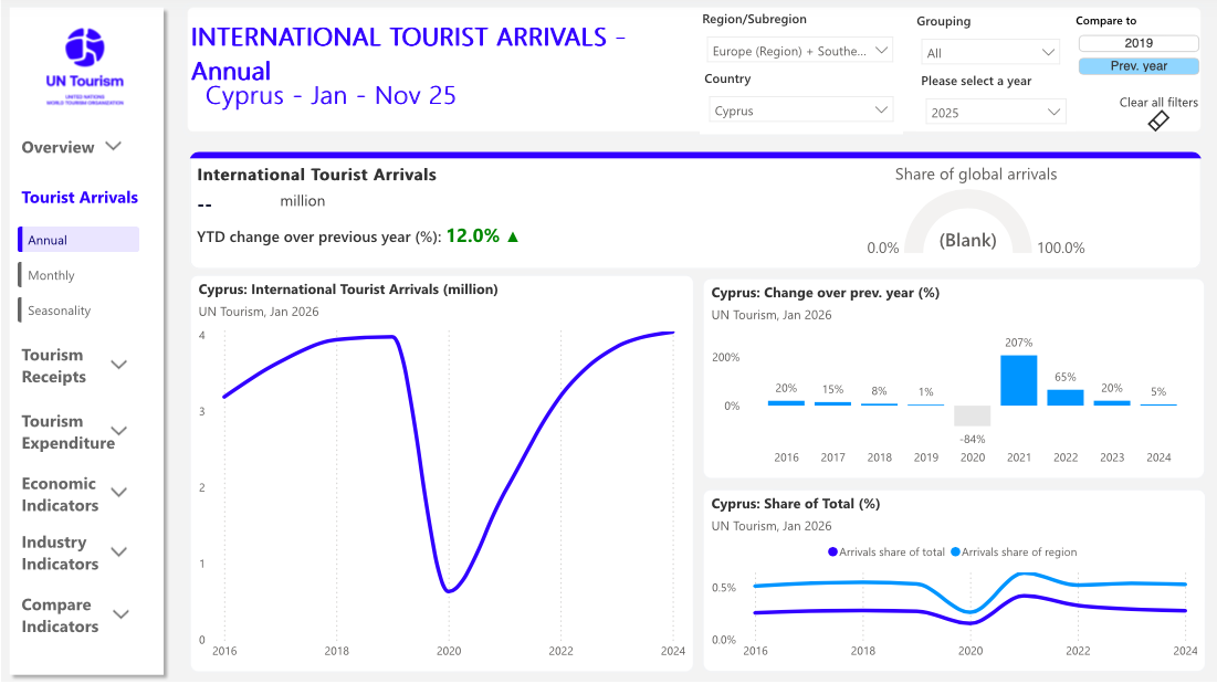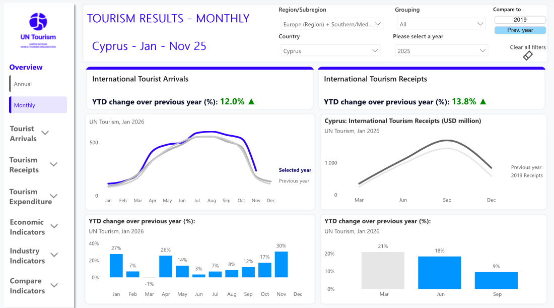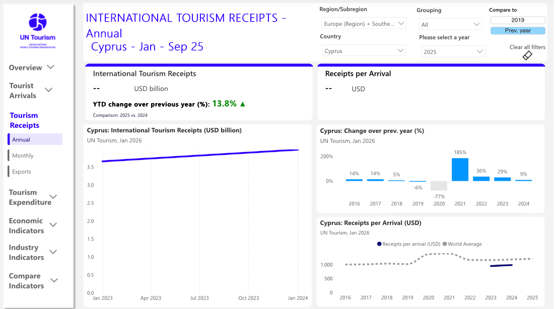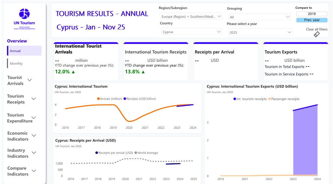 According to the latest data published by UN Tourism, Cyprus recorded strong and broad-based growth across arrivals and revenues in 2025, consolidating its post-pandemic recovery and reinforcing tourism’s role as a key pillar of the economy.