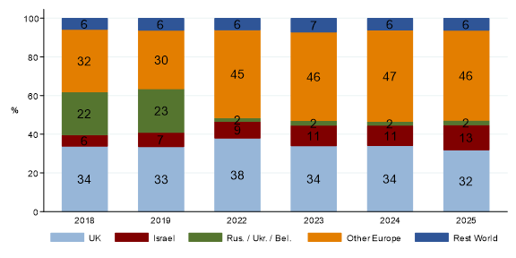 Graph 2: Arrivals by nationality, 2018-2025