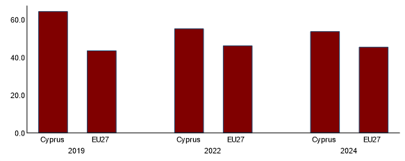 Risks are concentrated in structure rather than near-term momentum. The European Commission has introduced the “EU Tourism Dashboard” as a new monitoring tool to track tourism intensity, seasonality and source-market concentration, providing a common EU framework for identifying “unbalanced tourism” conditions and related vulnerabilities at country level. Cyprus retains high tourism intensity (measured as the number of nights spent at tourist accommodations by the resident population an indicator for potential overtourism) and still relies heavily on a small number of origin markets (see Graph 3), leaving earnings sensitive to geopolitical shocks or demand swings in key countries. Seasonality remains pronounced, keeping pressure on infrastructure, housing and labour during peak months, and straining resources (such as water) while also contributing to higher pollution levels. Targeted investment, product upgrading and continued market diversification remain key to resilience.