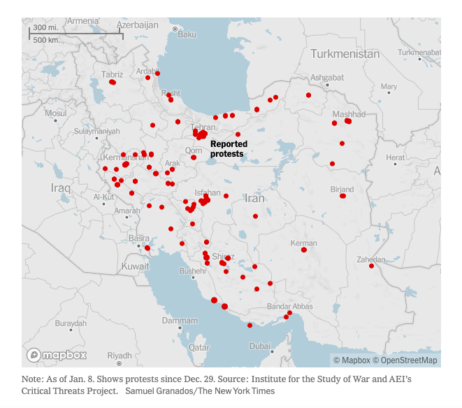 Eyewitness accounts and verified videos have shown extensive street clashes, large crowds chanting slogans against the regime, fires in major cities, and confrontations with security forces that have used live ammunition, tear gas, and other forceful tactics.
