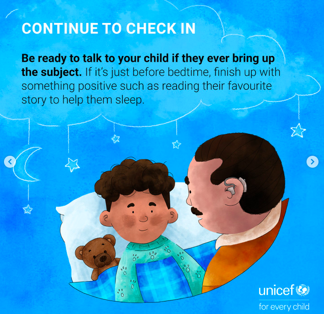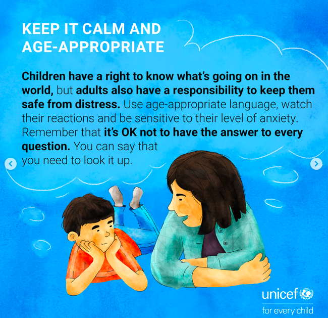 Guidance from UNICEF provides a framework that prioritises calm communication, empathy and reassurance, helping families navigate difficult conversations in uncertain times.