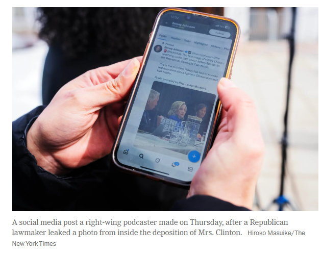 The session grew tense about an hour in, when a Republican lawmaker leaked a photograph from inside the closed-door proceedings. The image quickly appeared on social media via a right-wing podcaster, triggering objections from Clinton’s legal team and a temporary pause in the testimony. Democrats on the committee accused Republicans of breaking their own rules by allowing images from a private deposition to be made public.