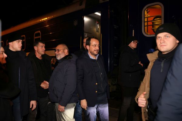 President Christodoulides arrived in the Ukrainian capital early this morning and was welcomed at the central train station by Ukraine’s Deputy Foreign Minister Yevhen Perebyinis and Ukraine’s Ambassador to Cyprus Sergii Nizhynskyi. His programme began with a visit to the Wall of Heroes, the memorial honouring fallen soldiers on the outer wall of Saint Michael’s Golden-Domed Monastery.