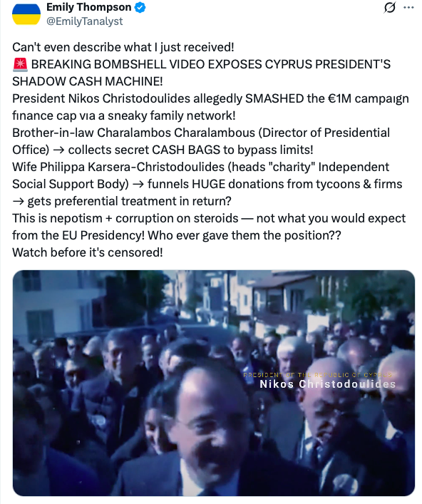 According to Sivirianou, it can neither be confirmed nor ruled out that the case constitutes a hybrid warfare operation. The Emily Thompson profile on X, created in July 2022, was primarily engaged until 2024 in reposting content related to political and geopolitical issues. Some posts were pro-Russian, while others adopted a neutral stance.