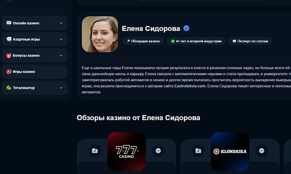 The same photo – but mirrored – also came up on a Russian online casino website, which claims that the person in the photo, in this case, ‘Elena Sidorova’, “writes interesting and helpful articles covering the principles of slot machine operation”.