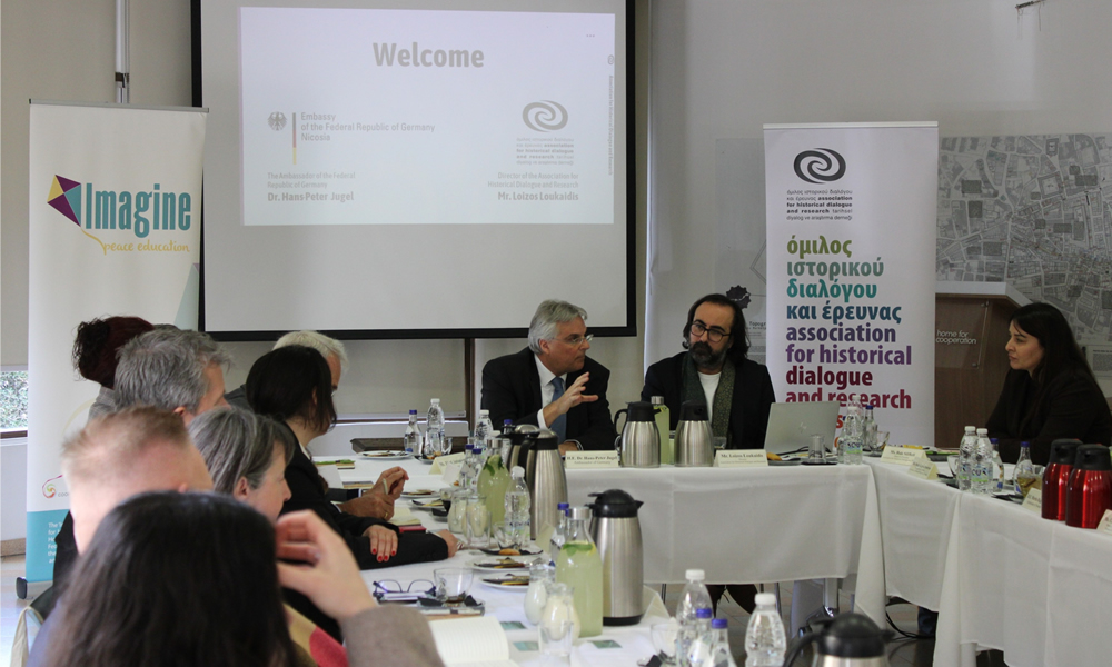 The Association for Historical Dialogue and Research (AHDR) and the German Ambassador Dr. Hans Peter-Jugel – whose country funds ‘Imagine’ – hosted resident diplomats for a discussion at the Home for Cooperation in the buffer zone, providing an overview of the role of education in building trust, mutual understanding and a culture of peace on the island.
