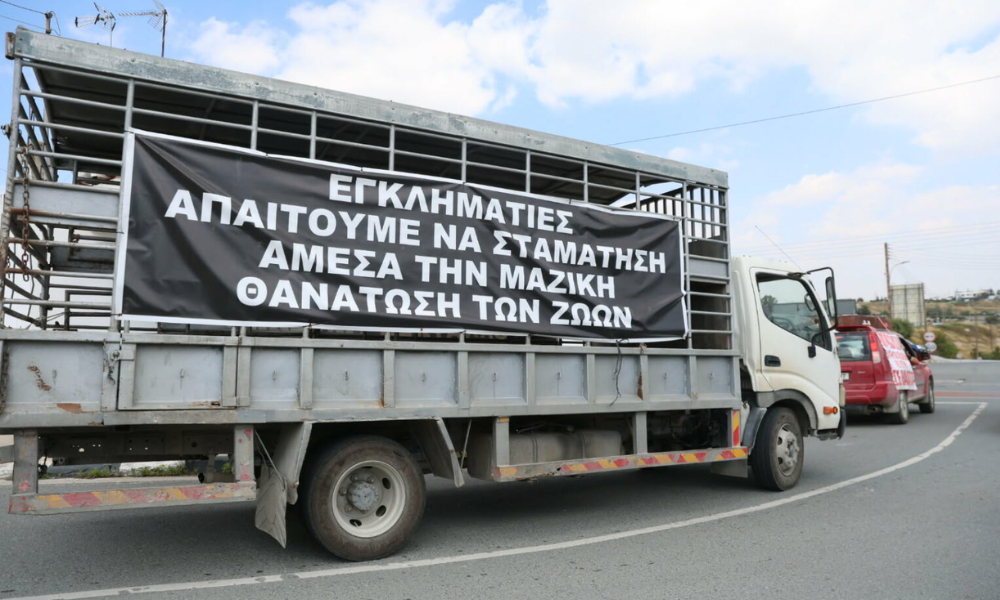 A group of livestock farmers is staging a protest at Rizoelia, having gathered in a car park near a local centre before marching toward the Rizoelia roundabout. Participants are carrying banners, a symbolic coffin and wreaths, with their core demand being an immediate end to mass cullings. The protest is taking place under a heavy police presence, with officers in riot gear deployed to the area. A brief meeting between organisers and police took place ahead of the march.