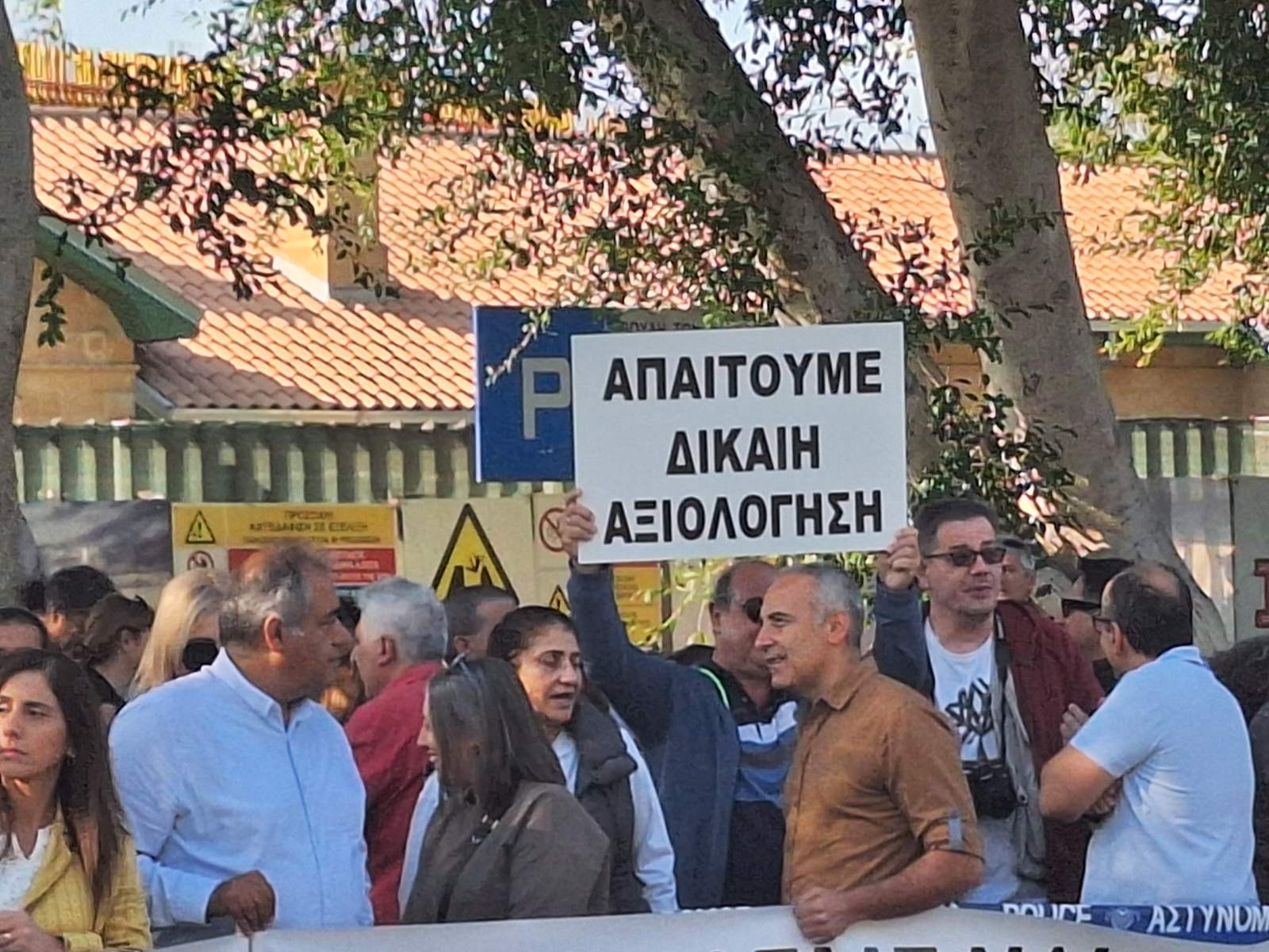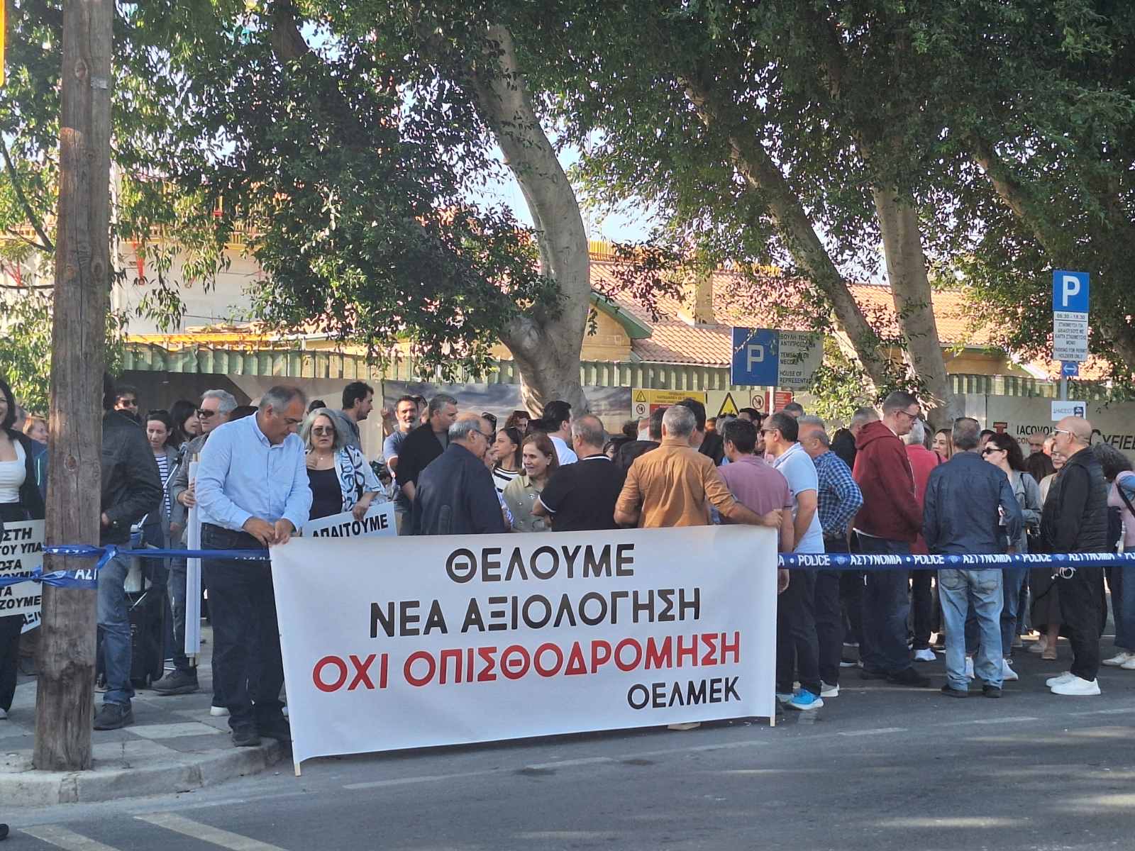 Only a few dozen high school teachers made it to parliament for a demonstration focusing on the arrival of House Speaker Annita Demetriou, as MPs were set to debate the governments' proposed evaluation bill.