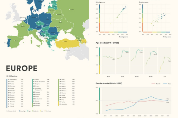 The Netherlands retains its global lead for the seventh consecutive year, followed by Croatia and Austria, both of which posted improved scores since 2024. Twelve EU member states fall into the “very high” proficiency category, where speakers can comfortably handle nuanced social interactions, negotiate professionally with native speakers and read advanced texts with ease.