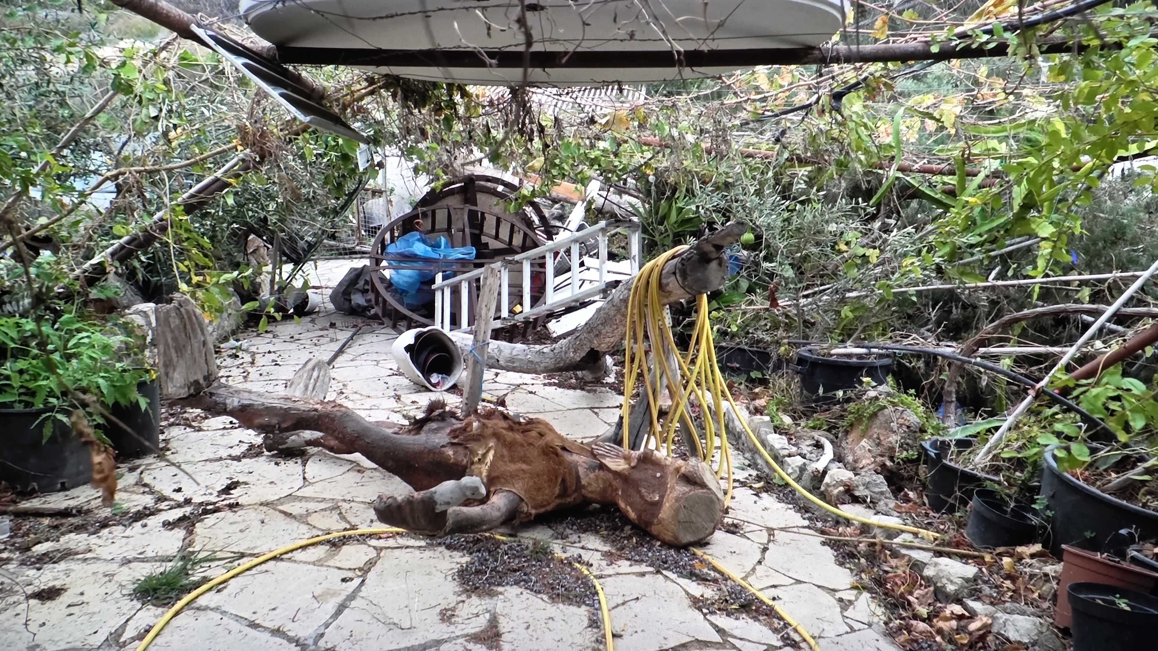 A twister caused damage at the Paphos community of Tala early this morning, uprooting no less than ten trees which fell on buildings adjacent to the Vrasidas folk art museum.
