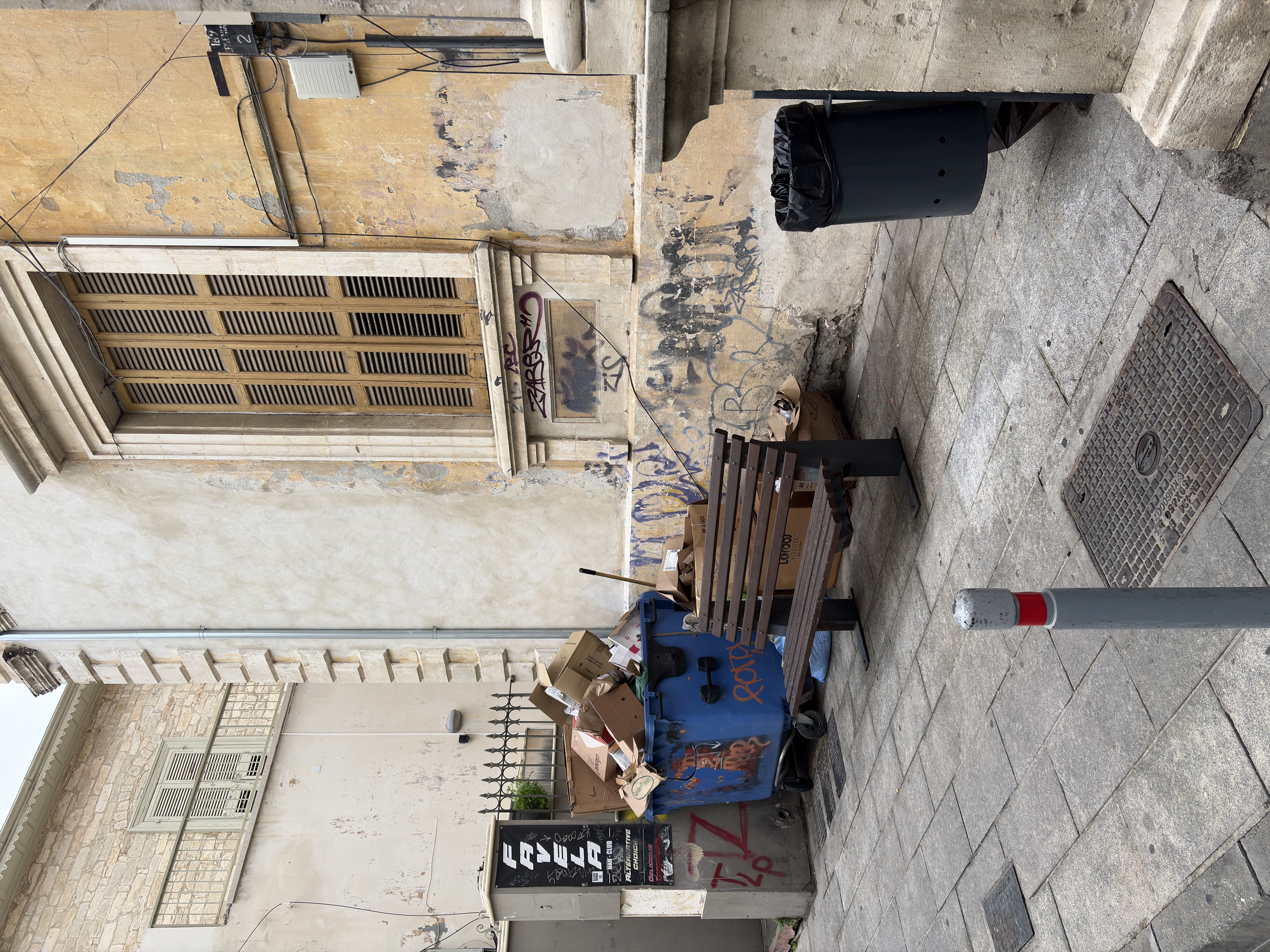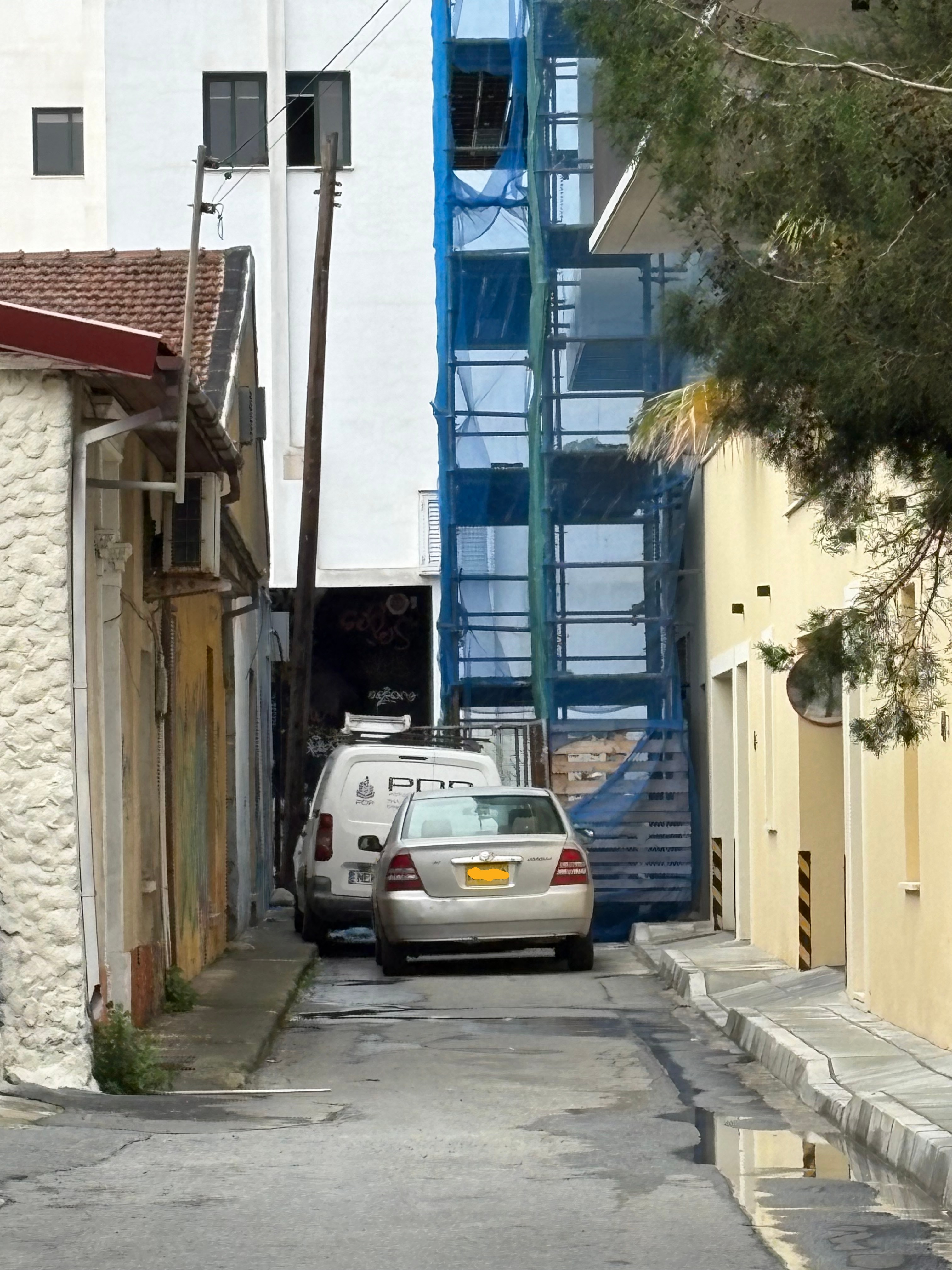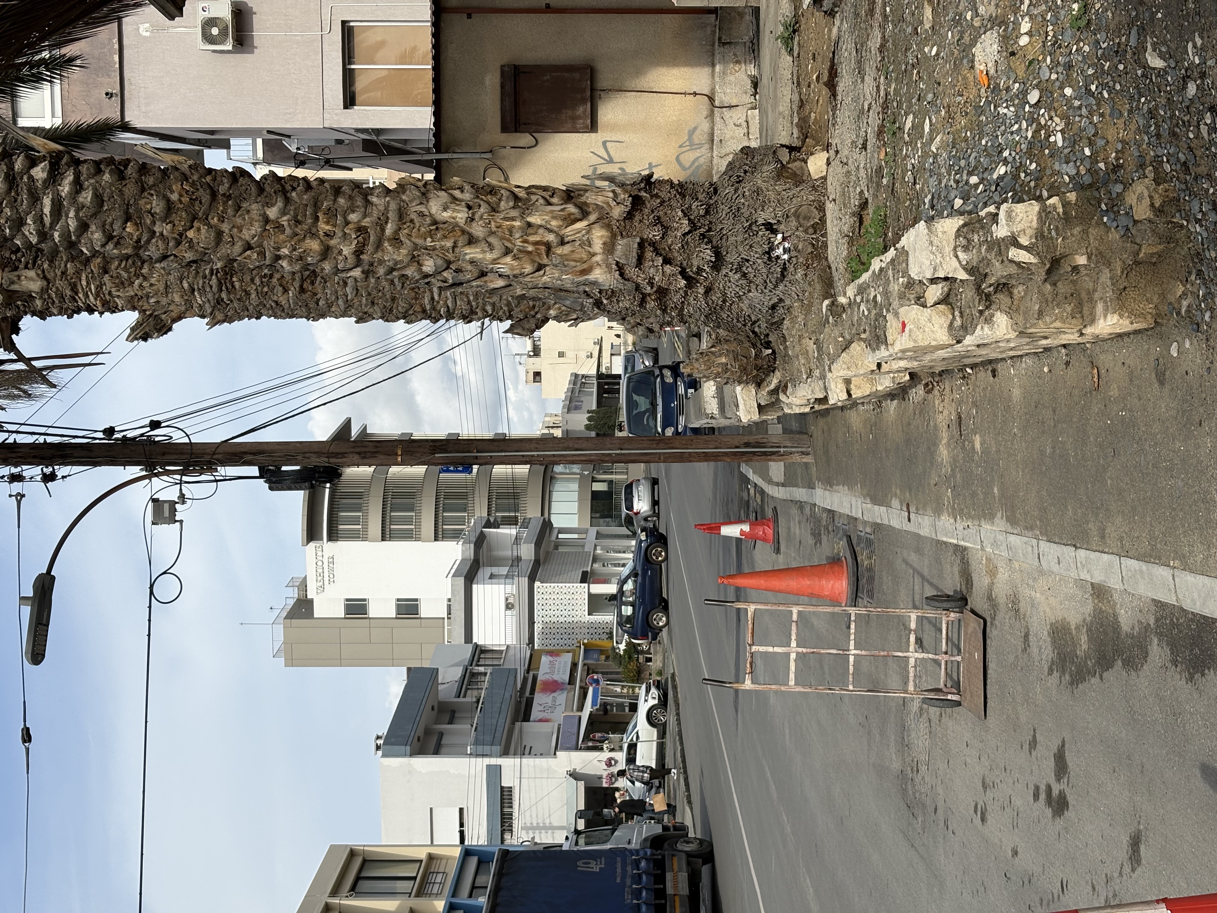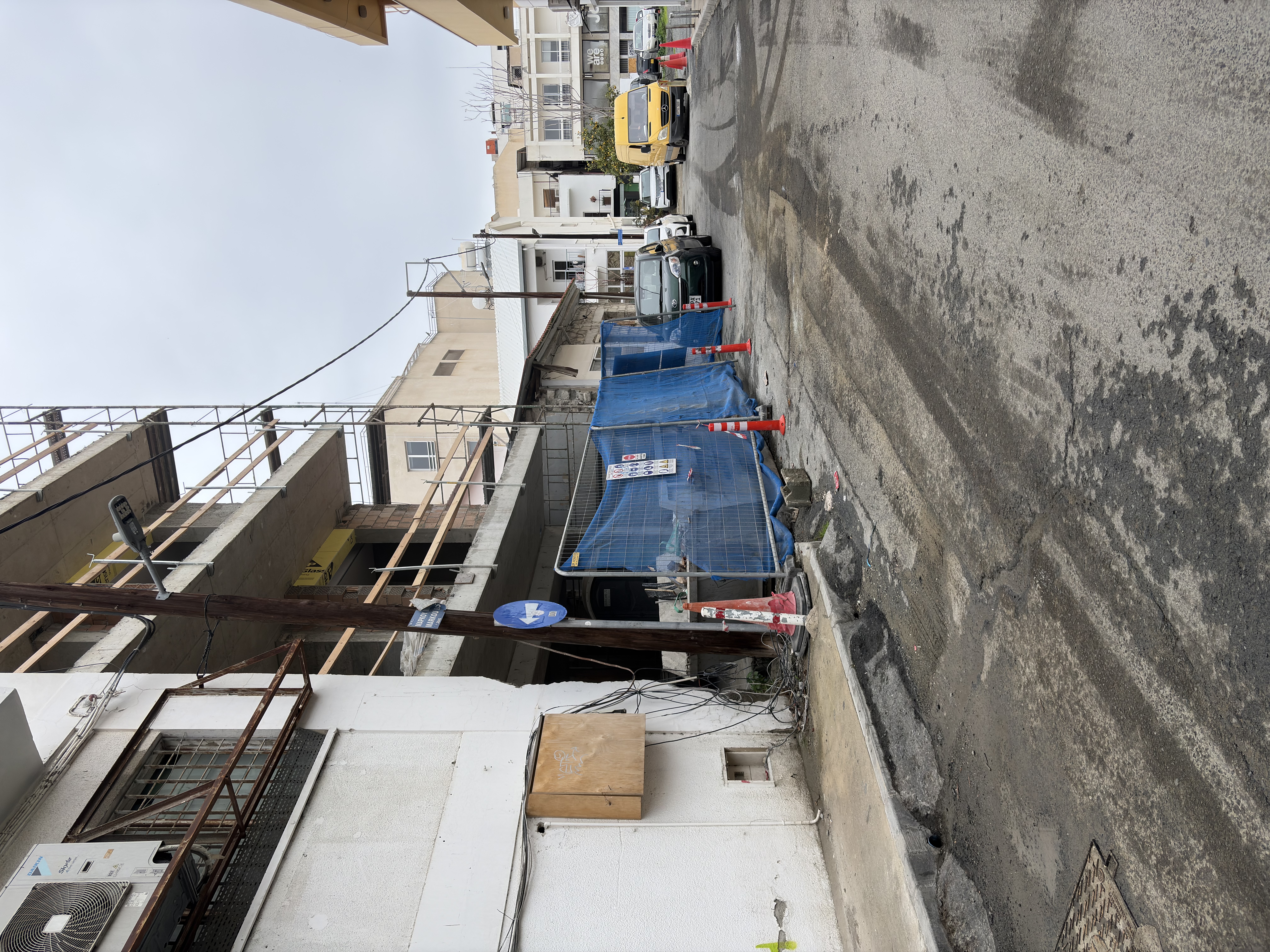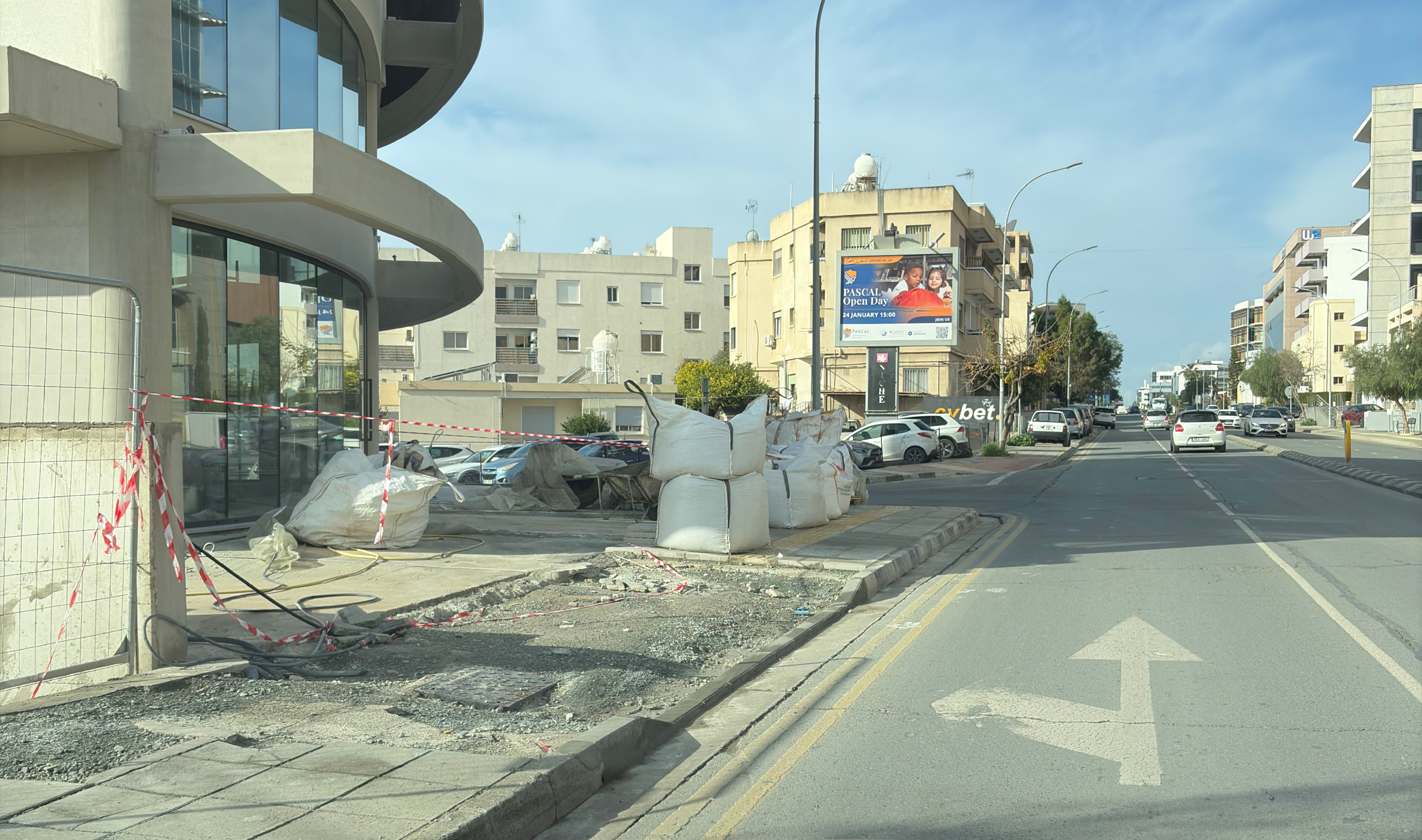 Photographs and short videos taken across different neighbourhoods tell the same story of beloved Limassol. Pavements that narrow until they vanish. Sidewalks occupied entirely by parked vehicles, trash and endless construction works, leaving pedestrians to improvise their way around metal fencing and broken kerbs.