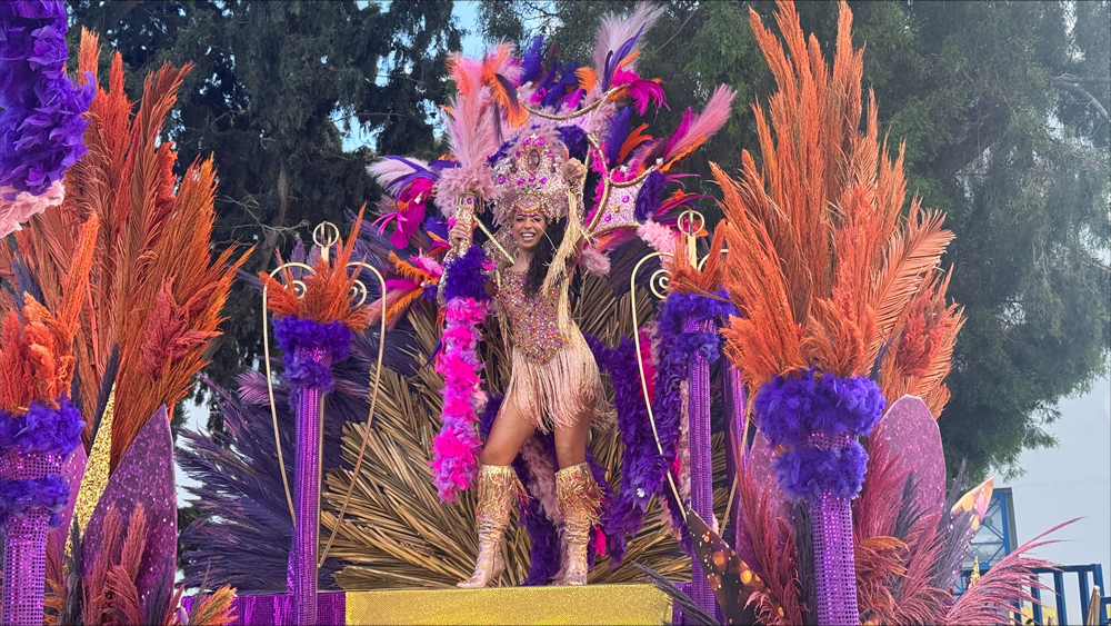 They were followed by the Mayor and members of Limassol Municipal Council, headed by the Queen of Passion and Madness of the Limassol Carnival and her entourage, surrounded by large groups and eye-catching floats.