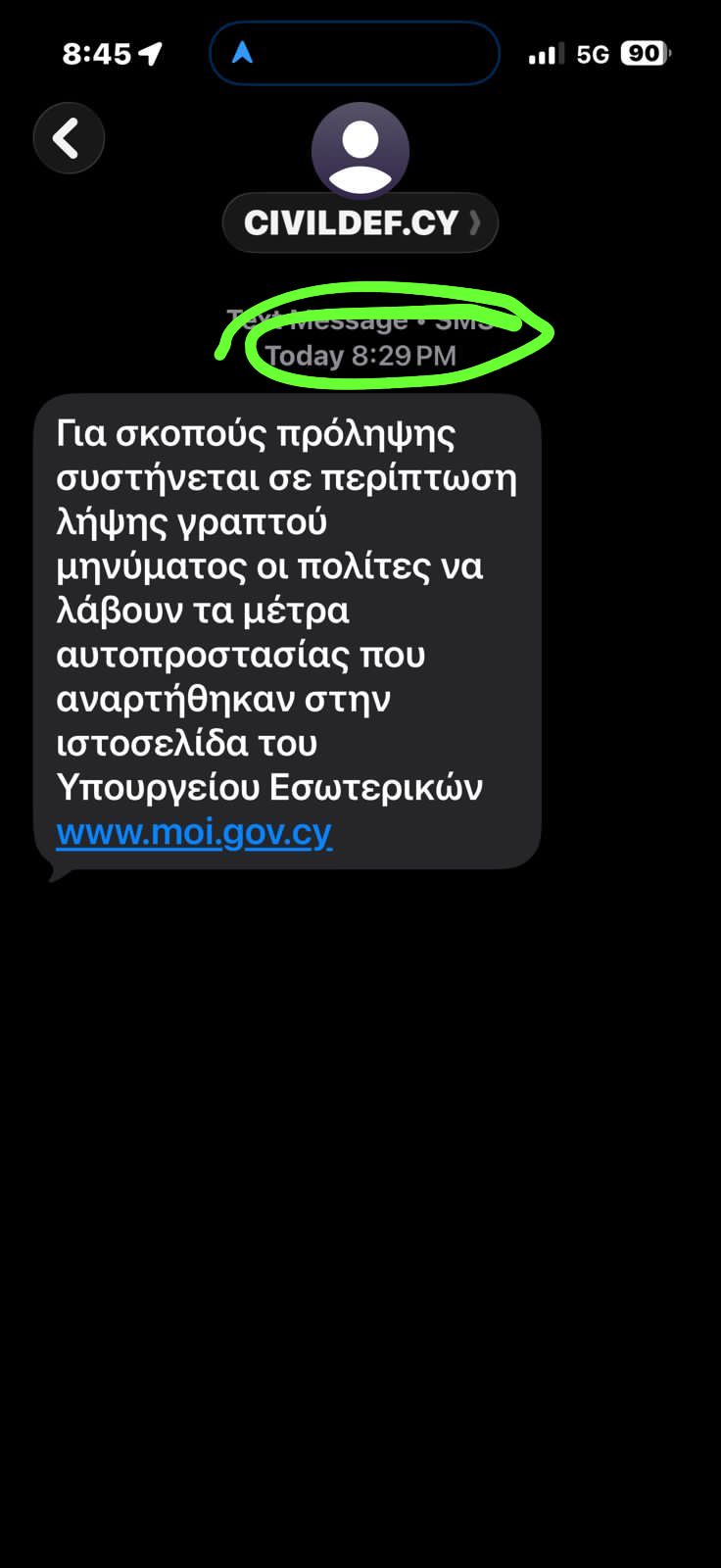 However, many citizens from various areas of Cyprus have reported that they have still (20:45) not yet received any message.
