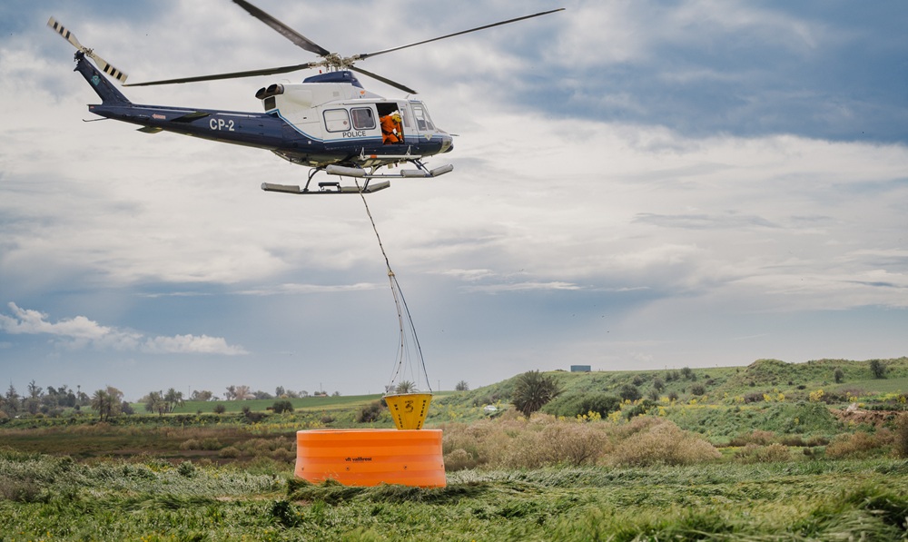 SupportCY offers the Republic of Cyprus an important alternative means of supplying water during fire emergencies through two inflatable water tanks costing €25,000 each. Abroad, they are widely used to supply water to firefighting helicopters, whether fitted with a bucket or with a suction hose, such as those rented by the Republic, for filling their internal tanks while hovering above the water surface.