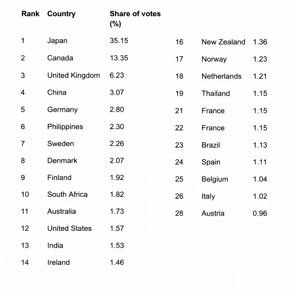 Germany follows a similar pattern. It ranks fifth worldwide in external perceptions, with respondents highlighting punctuality, respect for personal space and consideration for others. However, Germans rated themselves much lower, placing 21st.