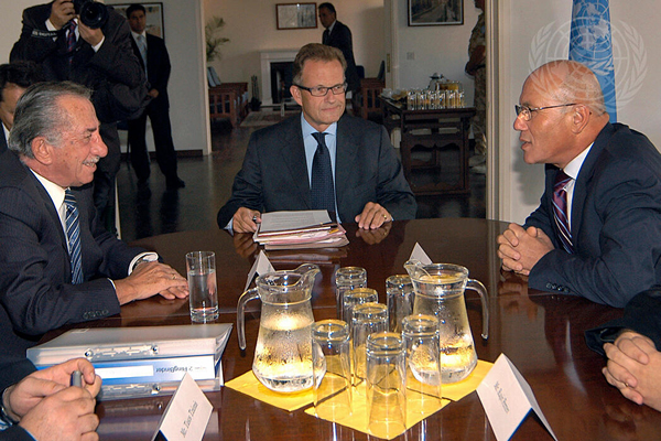 When UN Under-Secretary-General Ibrahim Gambari came to Cyprus in July 2006, the then UNSG Kofi Annan called during a meeting to speak to the two leaders, Talat and Papadopoulos, proposing they agree to a set of principles and decisions.
