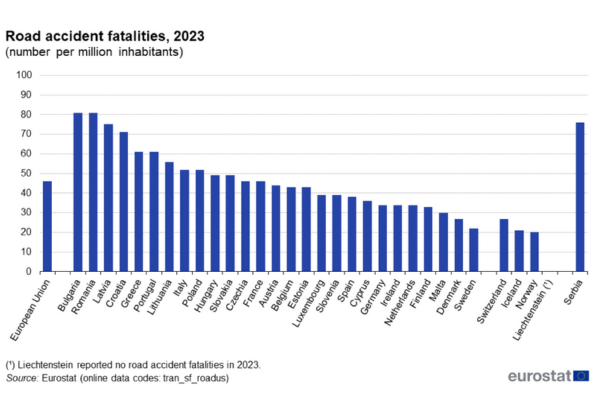 Sweden remains the safest country in the Union, with 20 deaths per million inhabitants, followed by Denmark at 24 per million. Romania and Bulgaria continue to record the highest fatality rates, at 78 and 81 per million respectively. Cyprus recorded an estimated 35 to 36 deaths per million inhabitants in 2023, placing it below the EU average of 46 per million and among the countries with relatively lower fatality rates.