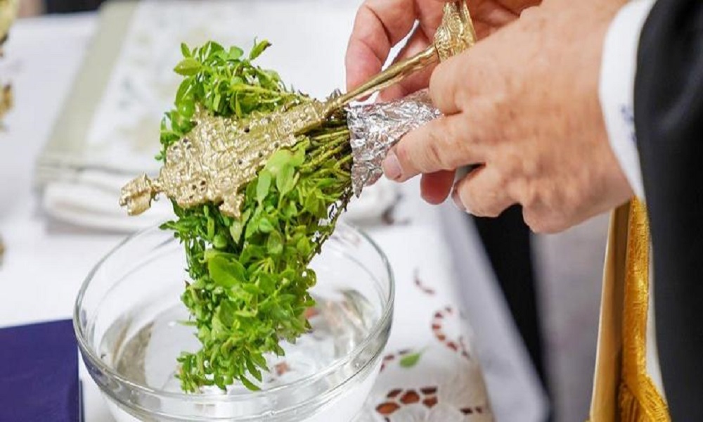 uses this holy water for the sprinkling of temples and houses. Fresh basil